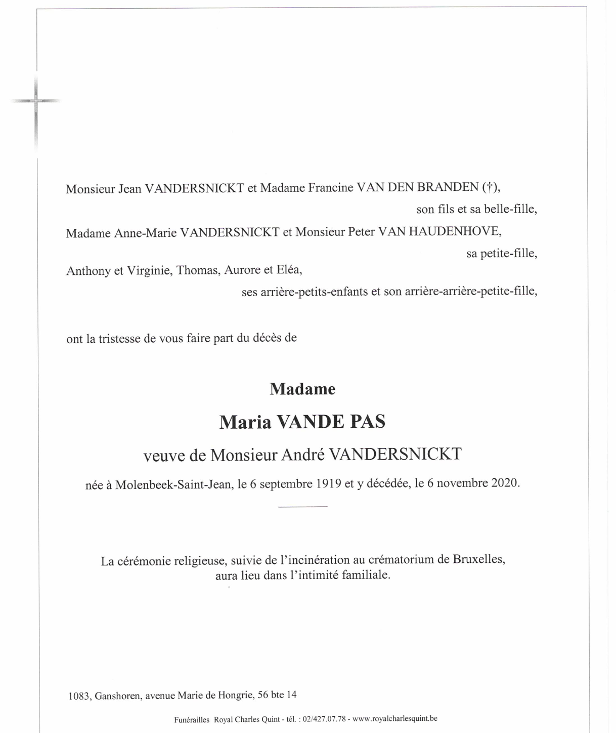 Décédée à Molenbeek-Saint-Jean (1080) le vendredi 6 novembre 2020 à l'âge de 101 ans