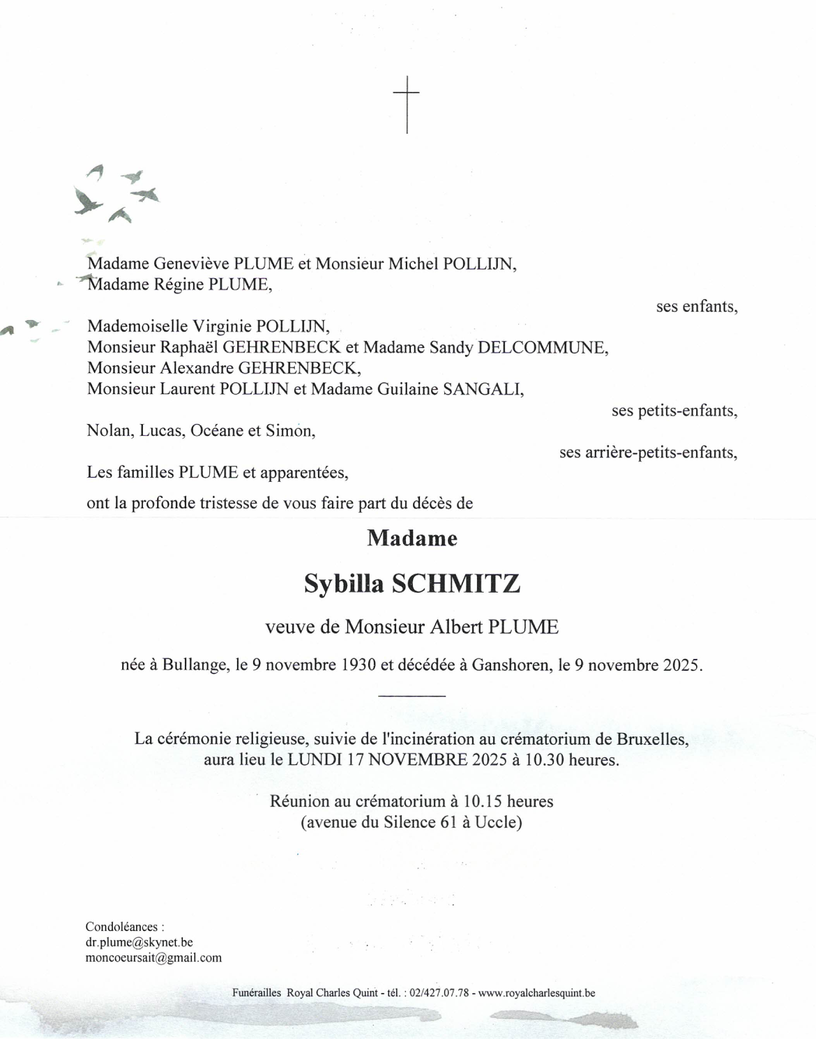 Décédée à Ganshoren (1083) le dimanche 9 novembre 2025 à l'âge de 95 ans