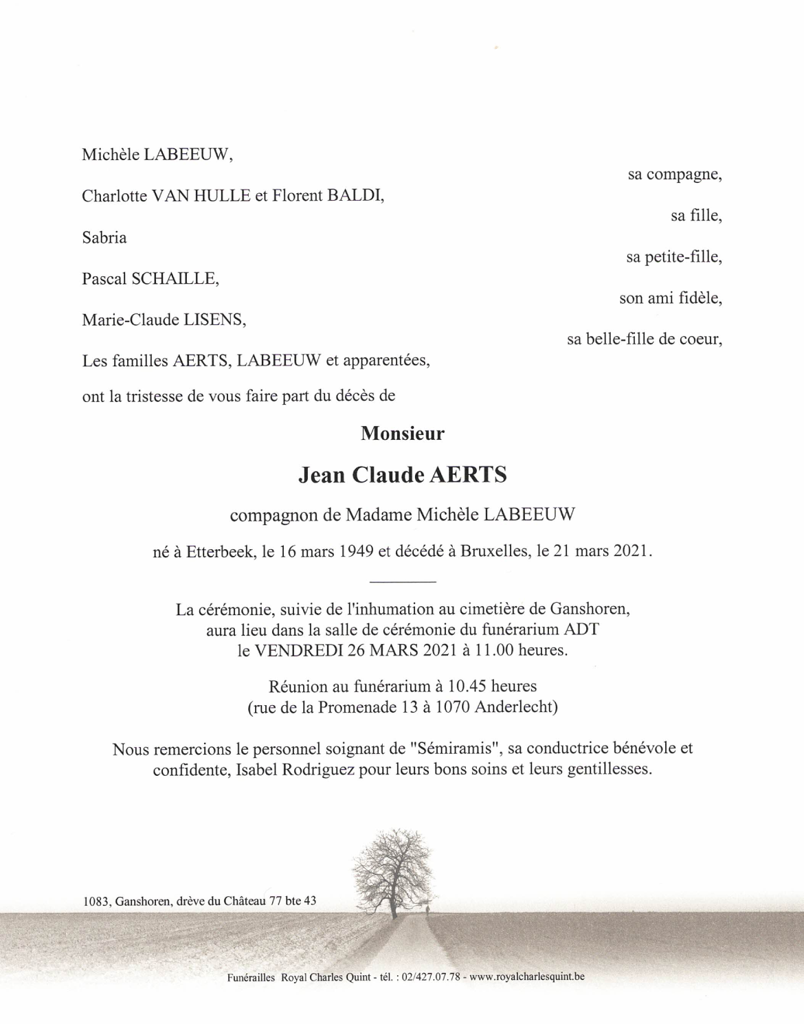 Décédé à Bruxelles (1000) le dimanche 21 mars 2021 à l'âge de 72 ans