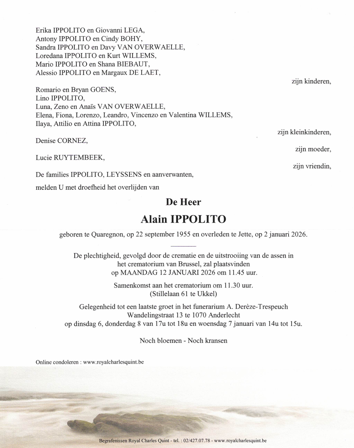 Décédé à Jette (1090) le vendredi 2 janvier 2026 à l'âge de 70 ans