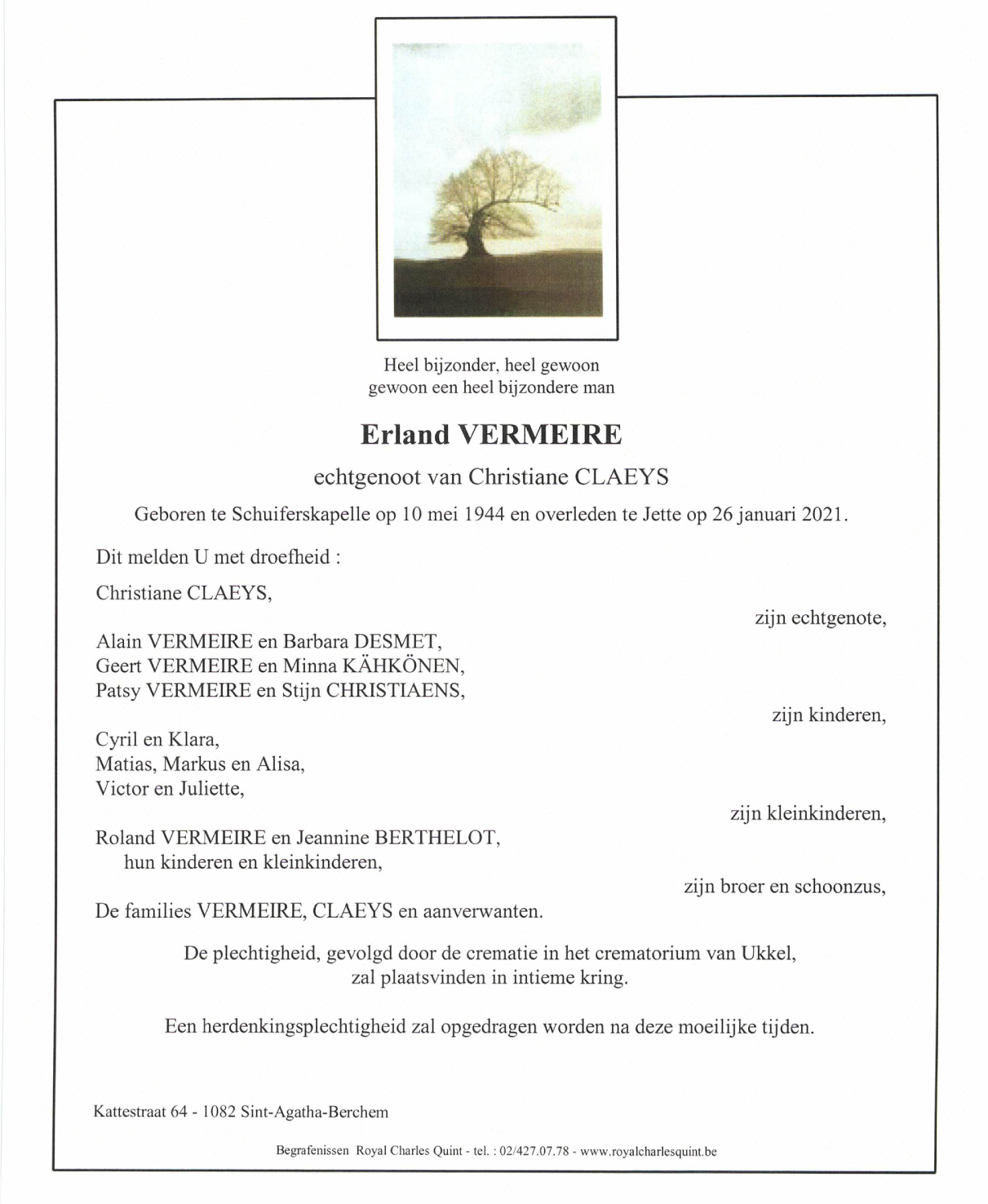 Décédé à Jette (1090) le mardi 26 janvier 2021 à l'âge de 76 ans